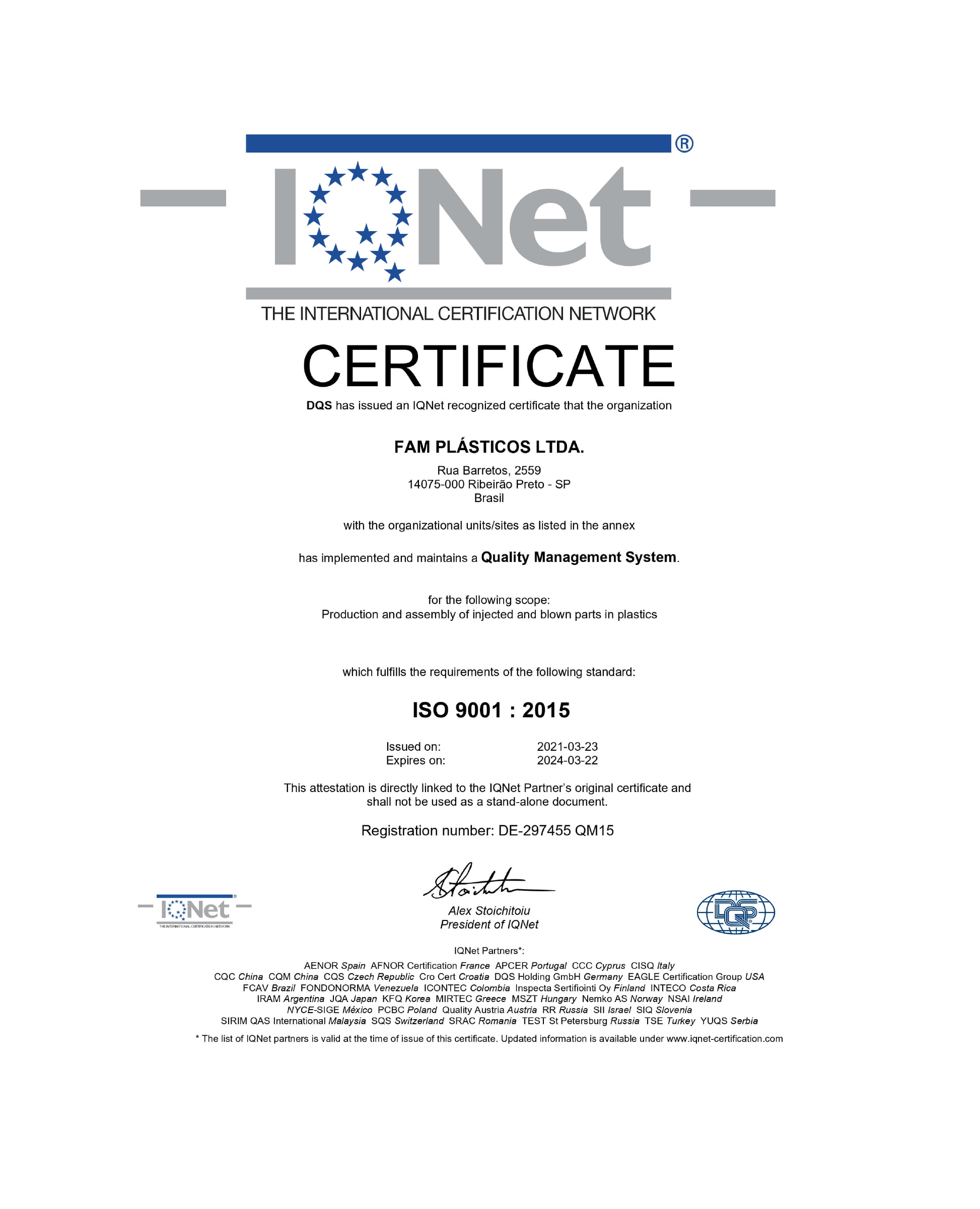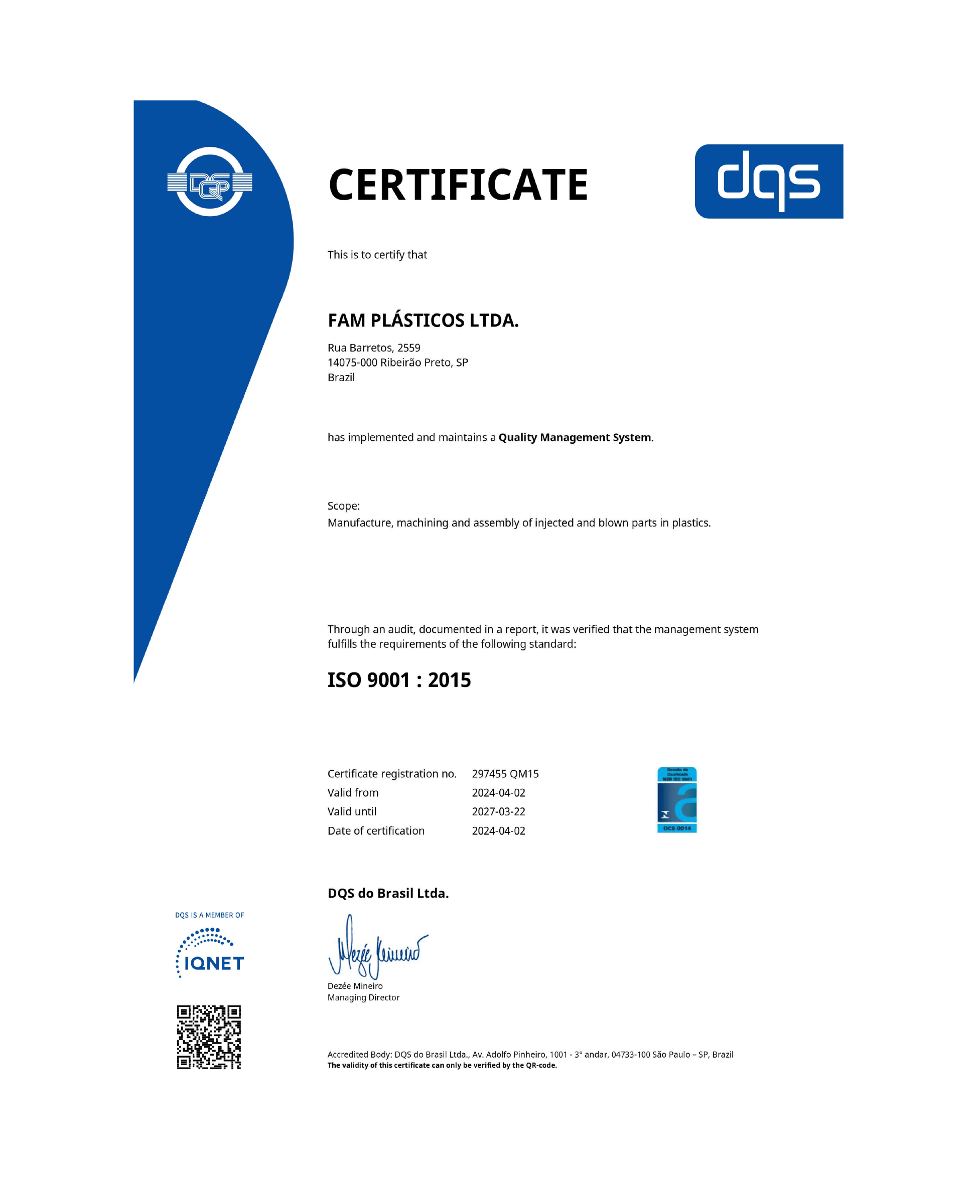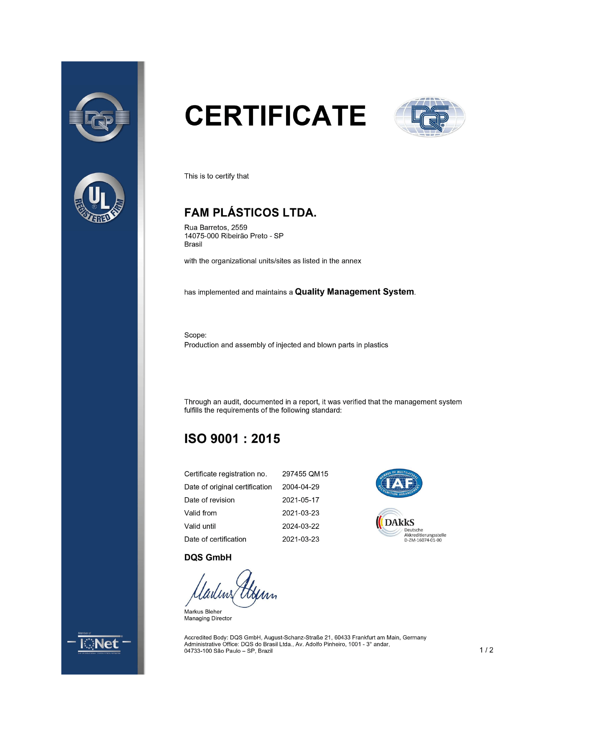 Somos certificados pela DQS desde 2004, pela Norma ISO 9001-2015.